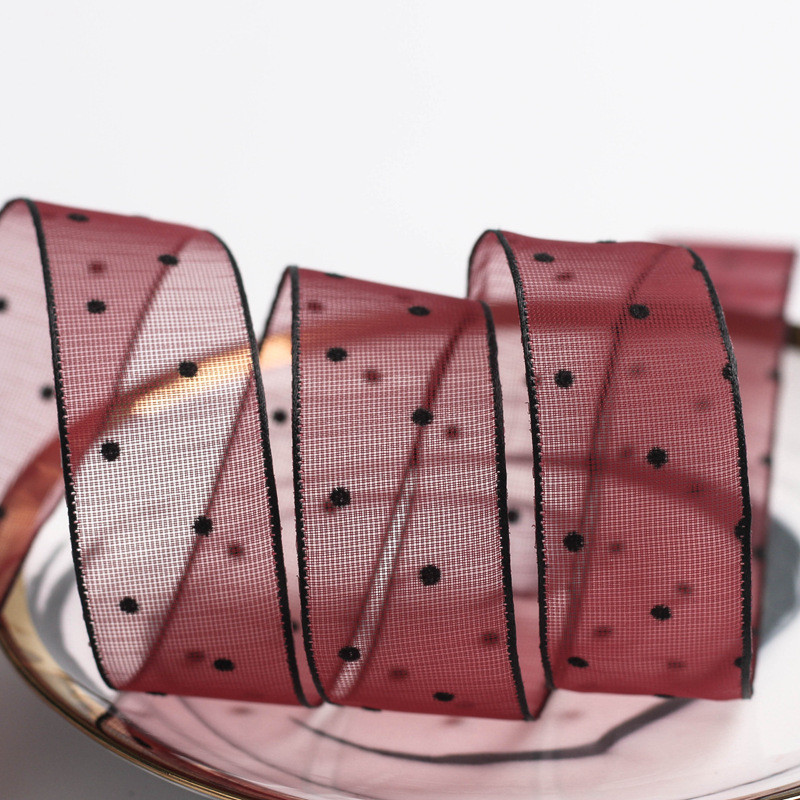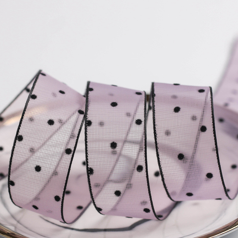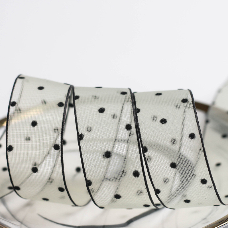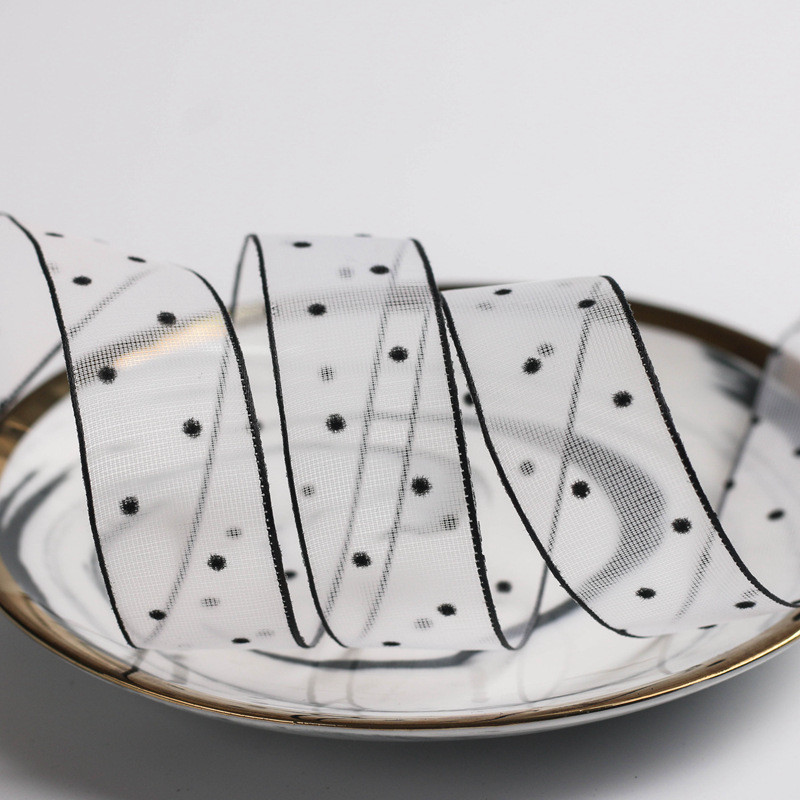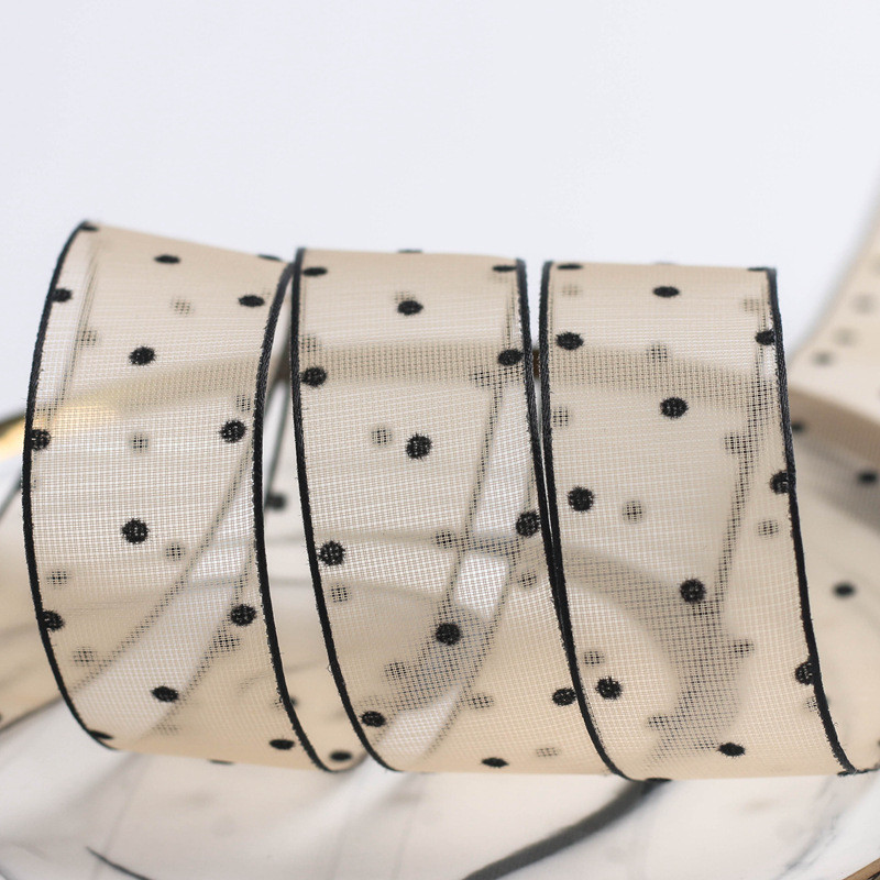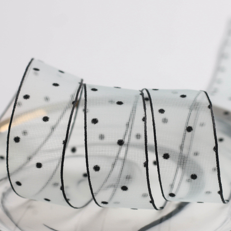 10mm-60mm Διπλό Πρόσωπο Τυφαντή Τήχη Βαλβούτη Dot Jacquard Έκτυψη Τυπωμένη Πολυεστέρα Organza Ribbon![]()